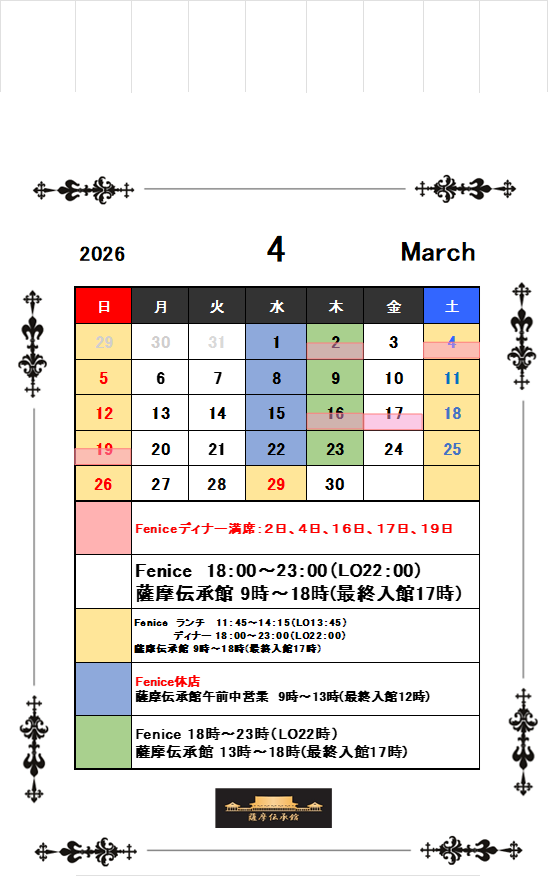 2026年4月の営業日と休館日のお知らせ