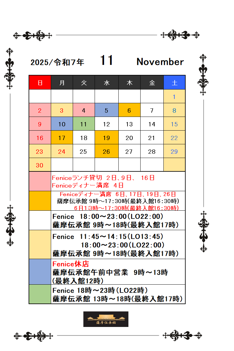 | 日 | 月 | 火 | 水 | 木 | 金 | 土 |