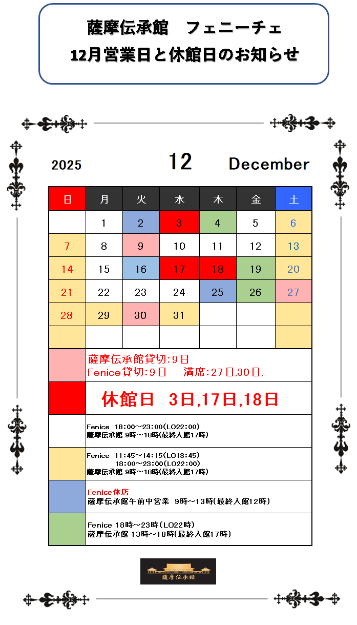 営業時間 9時~18時(最終入館17時) 水曜日9時~13時(最終入館12時) 木曜日13時~18時(最終入館17時)