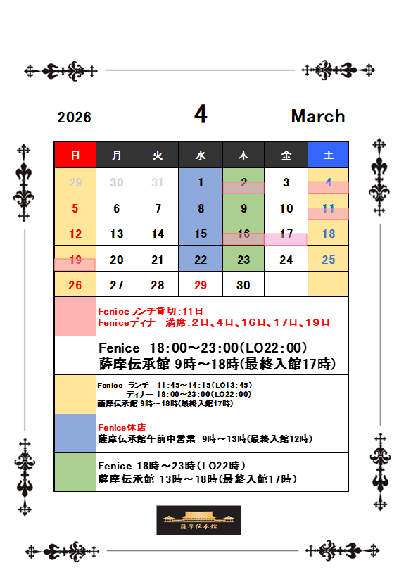 2026年4月の営業日と休館日のお知らせ